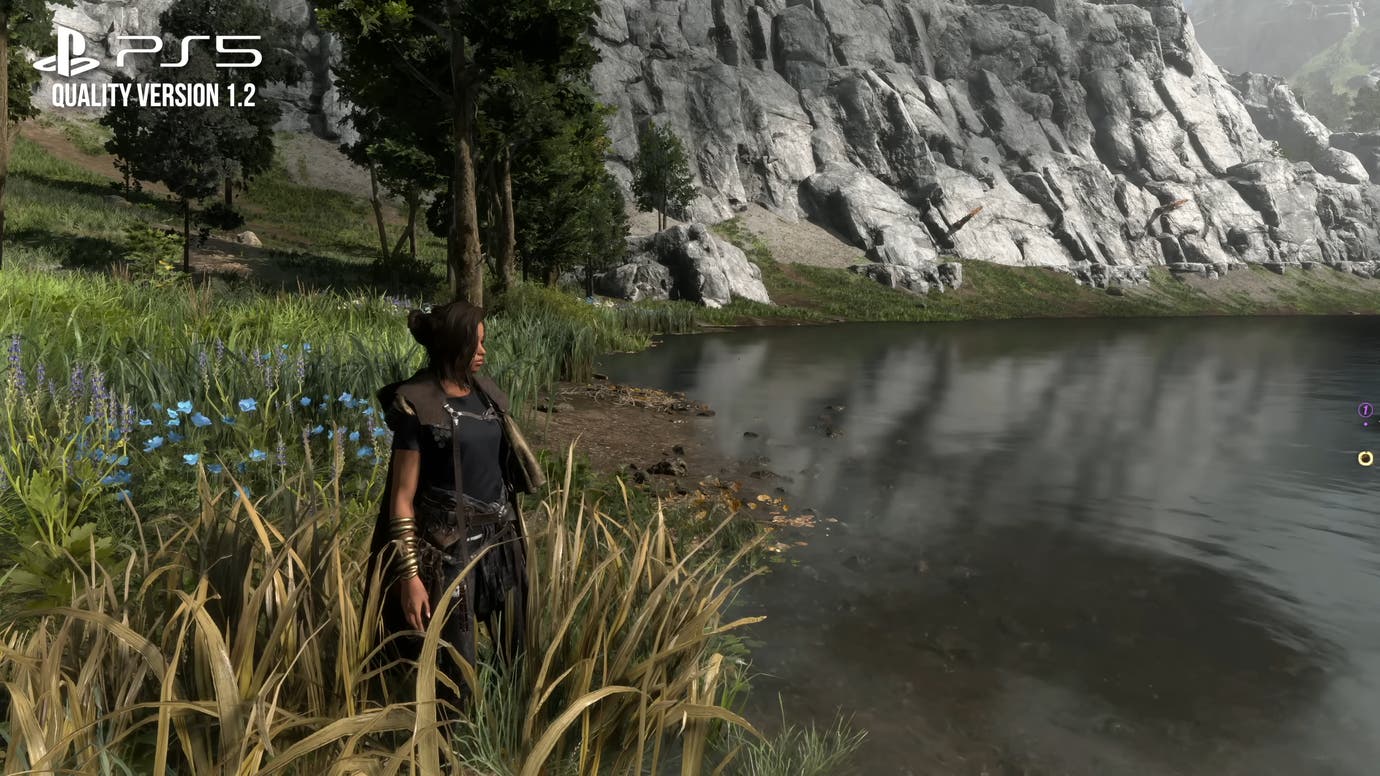 Poza tymi zmianami, reszta oświetlenia Forspoken pozostaje taka sama — więc upieczone oświetlenie może pozostać surowe z niewystarczającymi szczegółami, materiały mogą wyglądać na zbyt błyszczące, a odległe obiekty wciąż nie mają cienia, niezależnie od użycia RT. Odbicia są również słabym punktem, ponieważ niektóre wodniste powierzchnie w ogóle nie pasują do otoczenia, nawet przy wyświetlanych niezbędnych informacjach o miejscu na ekranie. Innym razem, nawet gdy zasięg SSR jest odpowiedni, odbicia nie są zniekształcone zgodnie z normalnymi zmarszczkami na samej wodzie. Pozostają również inne problemy, które John zauważył w swoim oryginalnym opisie gry, w tym dziwne decyzje dotyczące modelowania środowiska i oczywiste układanie tekstur.