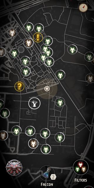 Zrzuty ekranu z gry Wiedźmin: Pogromca potworów mnie rozbijają. To mobilna gra rzeczywistości rozszerzonej, taka jak Pokémon Go, w której wyszukujesz stwory, obserwując świat za pomocą aparatu w telefonie, ale jest ona oparta na Wiedźminie, więc zamiast wielkookiego Bulbasaura możesz natknąć się na złą postać na swoim telefonie . dach lub znajdź zdeformowanego konia w ogrodzie. wynagrodzenie!